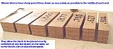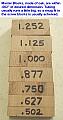 Master Blocks: Made of 3/4" oak, they are cut to widths corresponding with tube diameters. Centerlines are drawn on each end with a sharp pencel. They are placed on a line then screw blocks are put down on both sides. Then the tube placed in between the screw blocks will be located directly over the line on the table. They eliminate having to draw tube outlines. |
