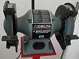 Bench Grinder: Mine is an 8" one with a coarse and a fine wheel. I use it for deburring tubes, sharpening tungsten, etc. Note that I sharpen my tungsten in a Makita battery drill, and run the tungsten back and forth across the wheel face to avoid making a groove. That way the wheel is still useful for general purpose grinding. I bought this one on sale at Home Depot for about $90 if I remember right. |