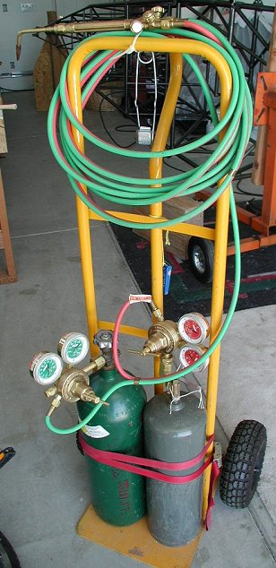 Gas Welding Rig: Used mostly for heating and bending parts and tubes, although I could weld with it too if I wanted to. About $300 with all the tanks etc, from my local welding supply. |