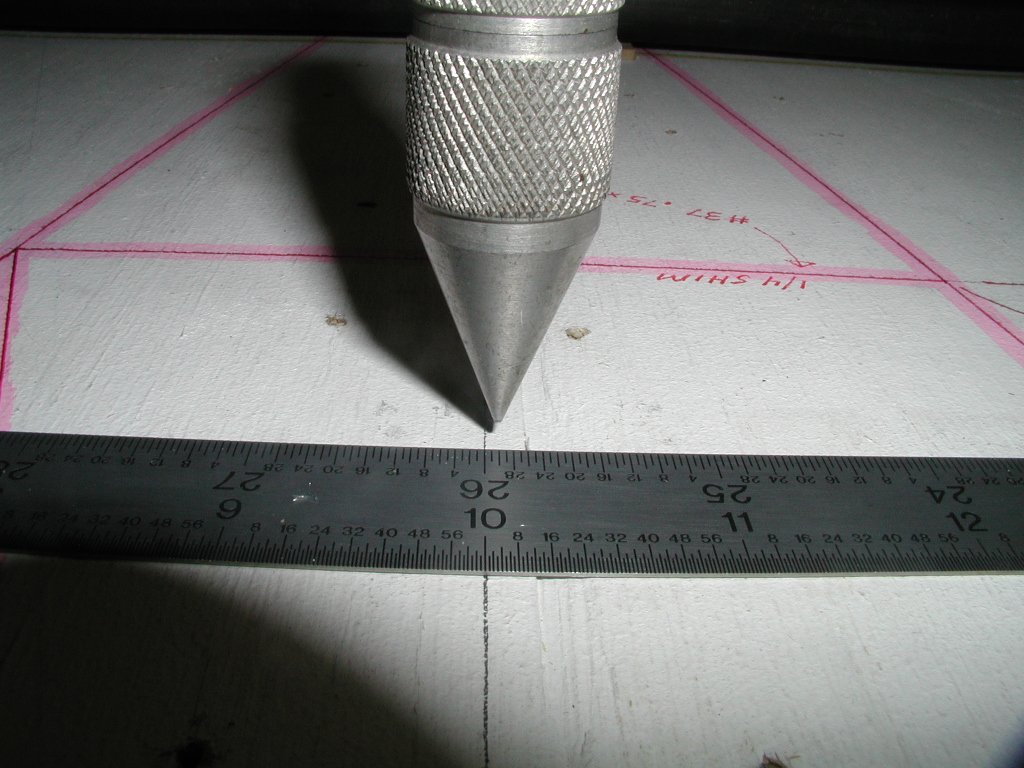 1Q01 - Plumb bob at tail shows bottom ladder aligned very closely above top ladder on tableClick image for full 1024 x 768 resolution