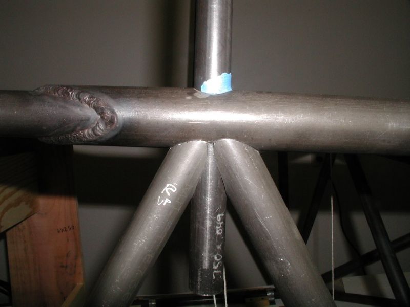 1Q01 - Fitting vertical tubes between the ladders at aft landing gear bushing. Gear bushing will not be tack welded until later when fitting gear sway plateClick image for full 1024 x 768 resolution