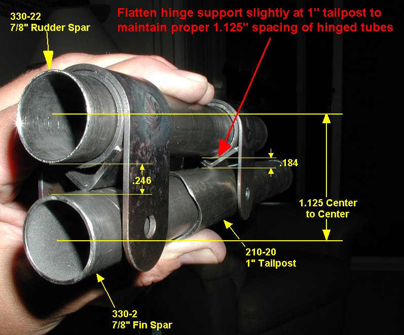 3Q01 - V shaped hinge supports flattened slightly at 1" inch diameter tailpost to maintain proper 1.125" spacing of hinged tubes797 x 661 - best resolution available