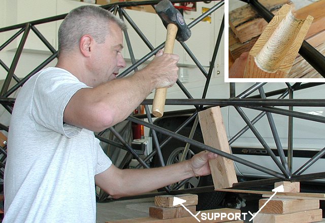 3Q01 - To remove slight inward distortion of tubes between joints, longerons supported at joints, and then straightened with medium hammer blows.640 x 439 - best resolution available