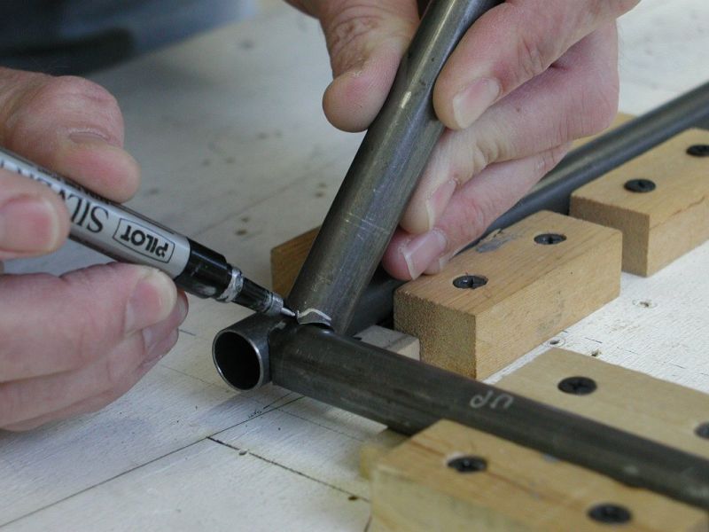 1Q02 - Marking where to remove metal from tube for better fitClick image for full 1024 x 768 resolution