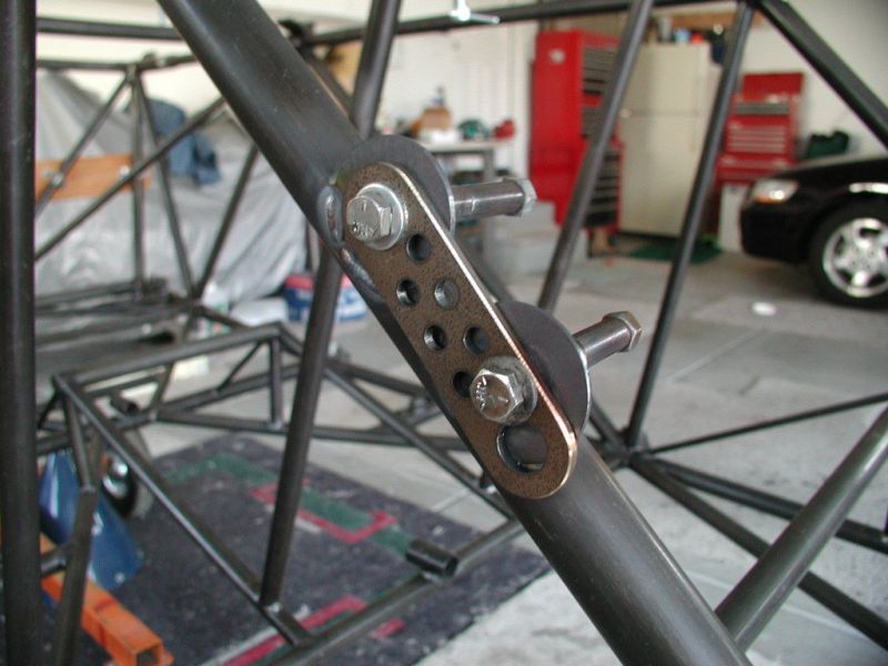 3Q02 - Control bushings set at proper spacing by using the rudder pedal adjusting plate which happens to have holes at 2 inch spacingClick image for full 1024 x 768 resolution