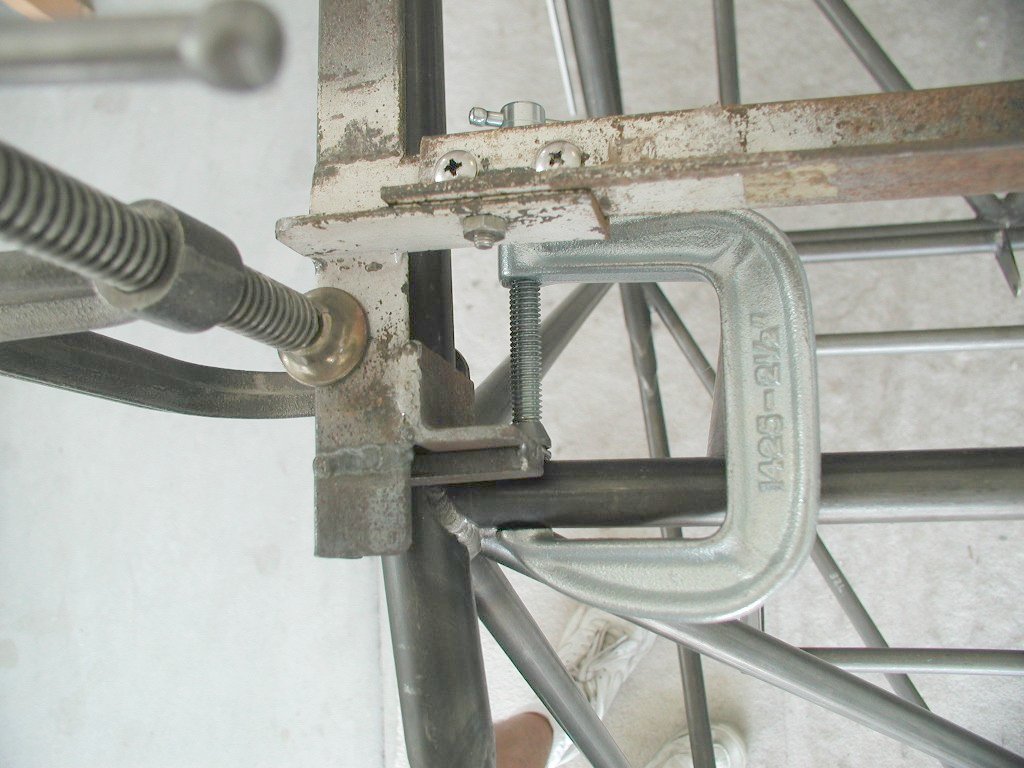 4Q02 - Canopy jig clamped to left side of fuselage crossmember at station 86.0Click image for full 1024 x 768 resolution