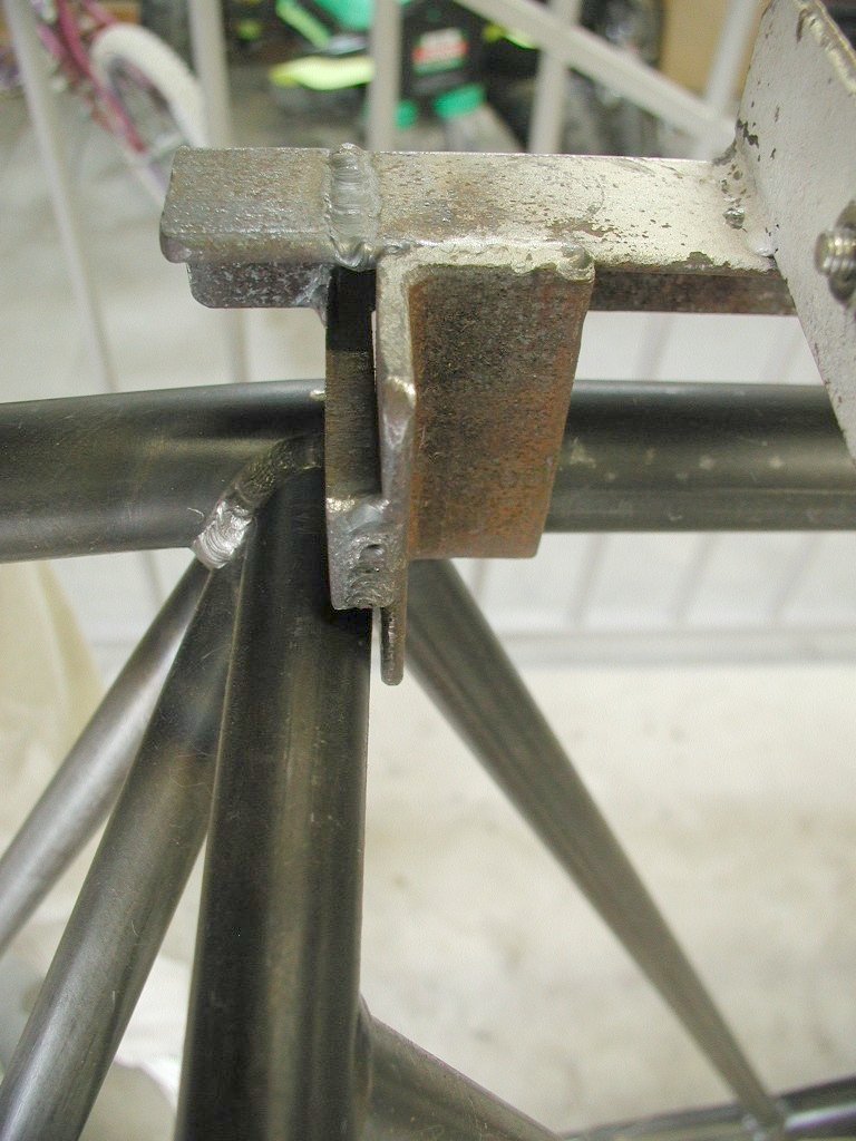 4Q02 - About to do 2nd try tackwelding the bushings with the jig in a more relaxed, unclamped position on the fuselage. Aft left corner of jig shown.768 x 1024 - best resolution available