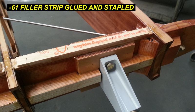 1Q14 - Filler strip glued, with paint sticks stapled down to hold it while glue curesClick image for full 1965 x 1138 resolution