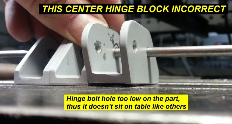 1Q14 - Unable to install left aileron due to a bad aileron side hinge block with mis-drilled hole at wrong height. ALL NON-KIMBALL AILERON HINGE PARTS WERE REPLACED WITH GENUINE KIMBALL PARTS.Click image for full 1626 x 872 resolution