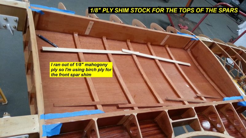 1Q14 - 1/8 inch shim cut for tops of spars. Ran out of mahogony ply so I used some birch ply for the front spar topClick image for full 2048 x 1152 resolution