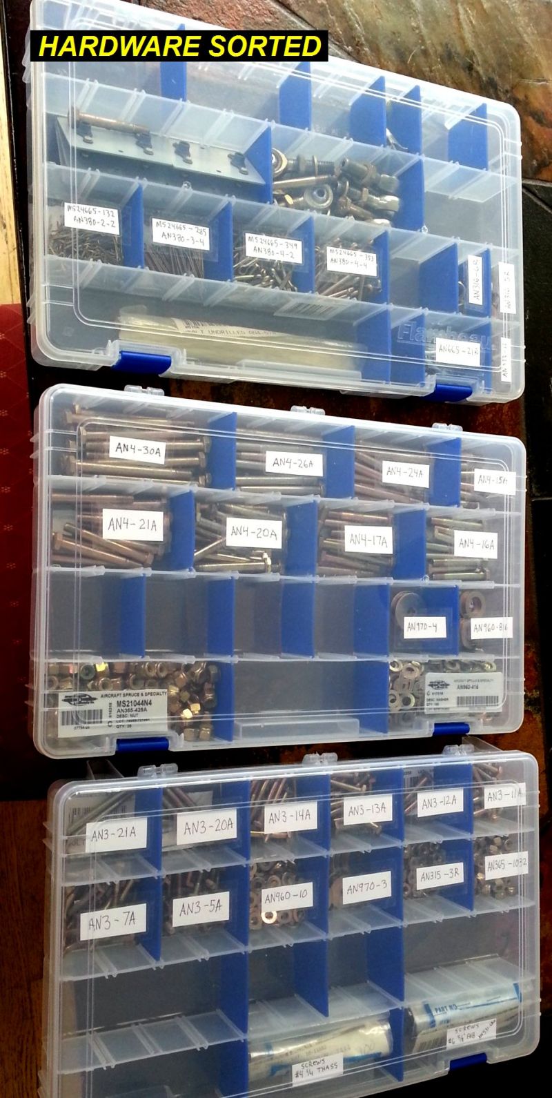 1Q14 - Bought these plastic organizers from walmart, now its easy to find the hardware I need. Sure beats all those litte plastic bags!Click image for full 967 x 1924 resolution