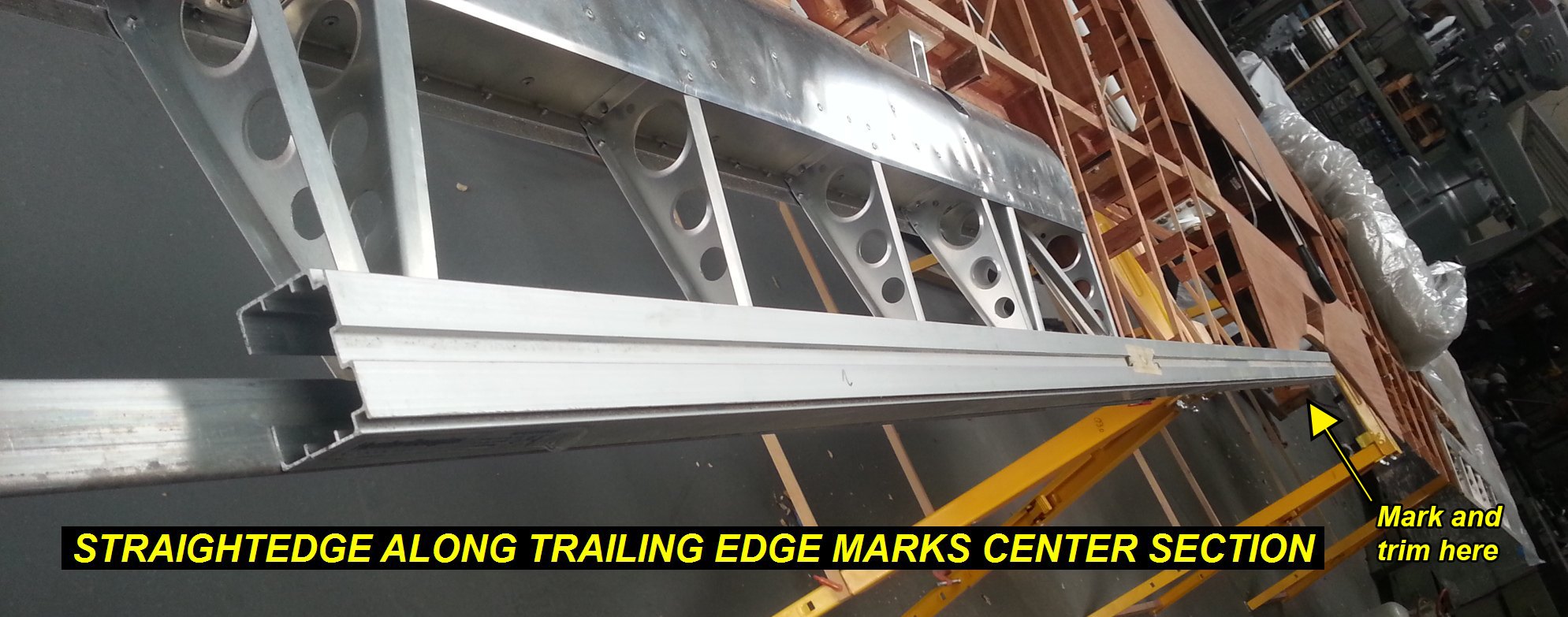2Q14 - Straightedge used along trailing edge of aileron and ribs to mark trailing edge at center sectionClick image for full 1989 x 783 resolution