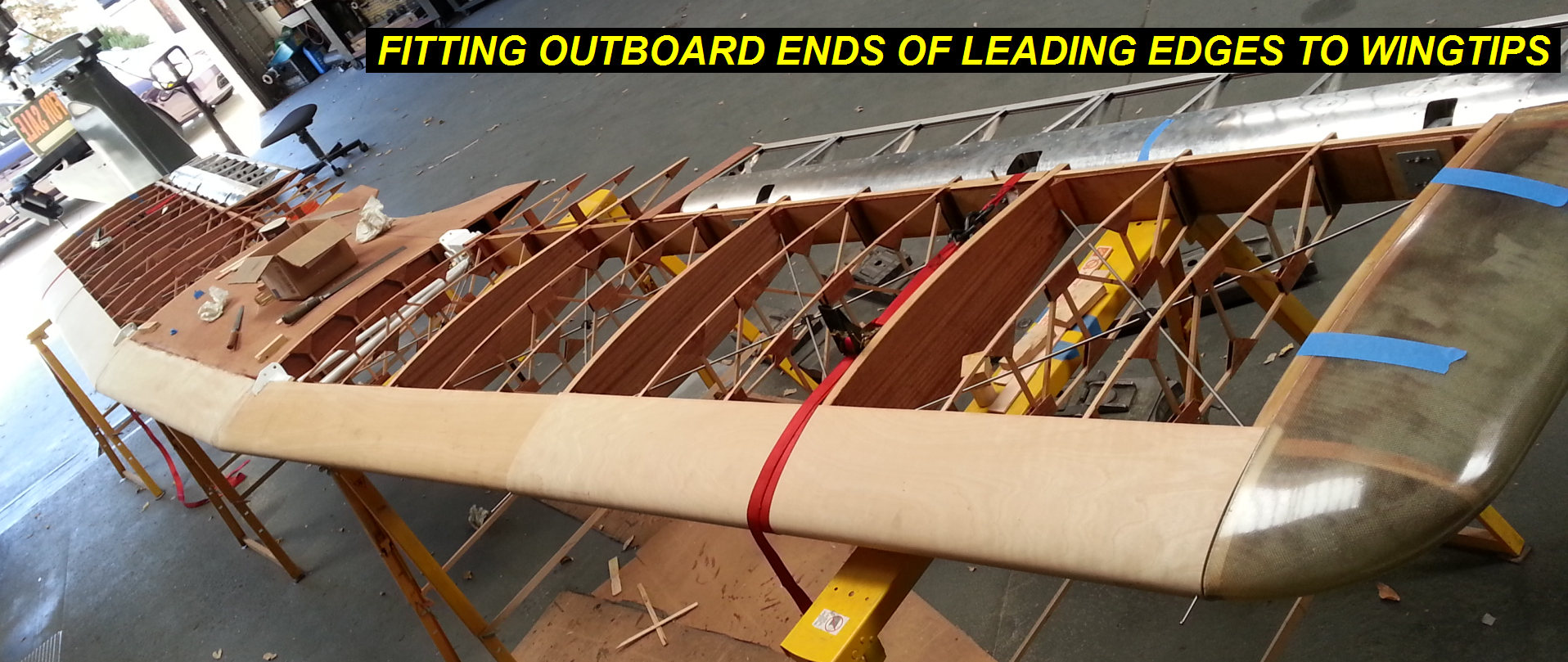 3Q14 - Trimming outer ends of leading edges to fit with fiberglass wingtipsClick image for full 1916 x 809 resolution