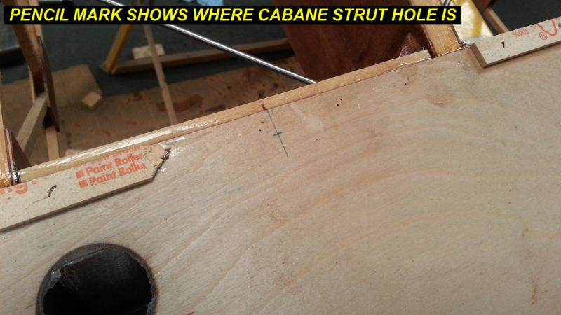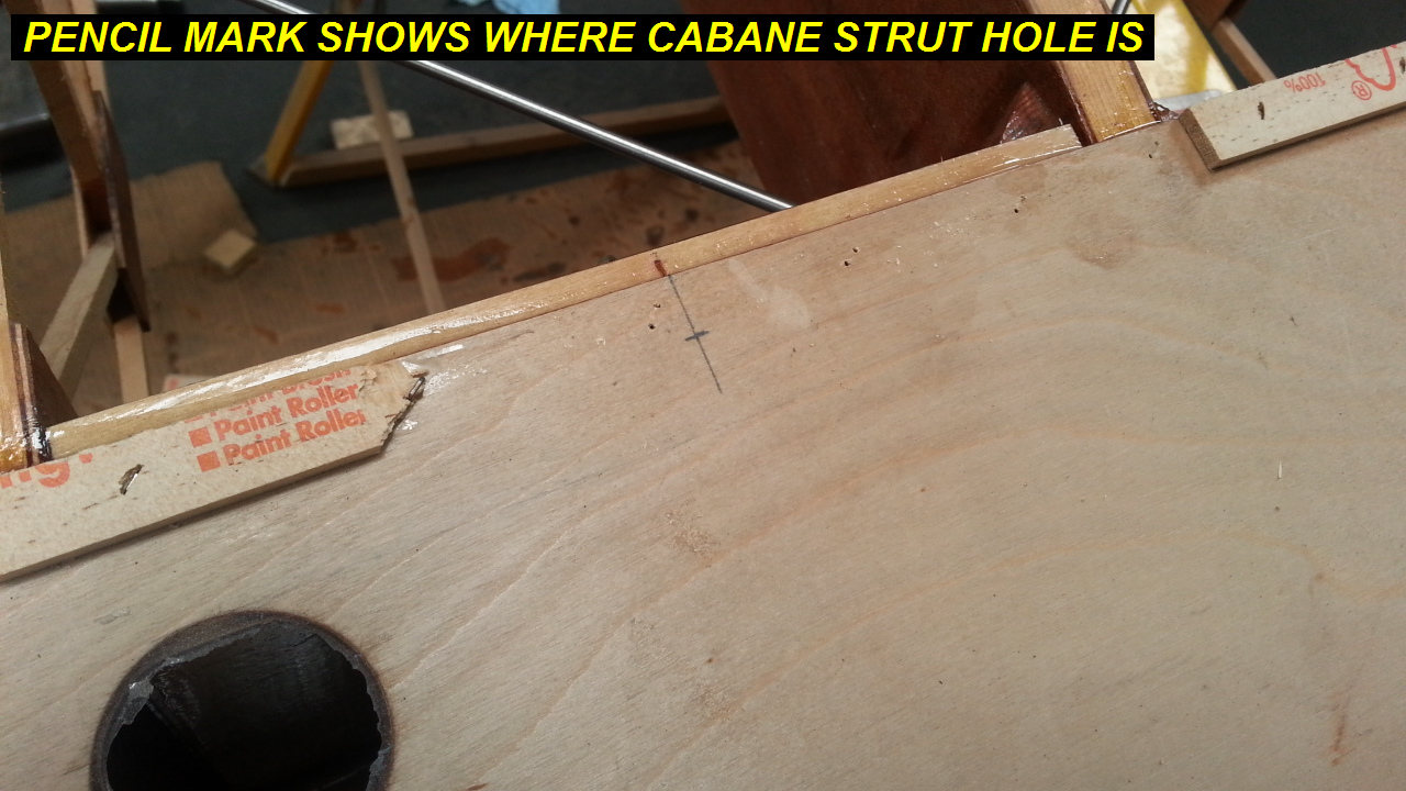 3Q14 - Cabane strut hole to be opened up after forgetting to drill the hole before gluing the leading edge onClick image for full 1280 x 720 resolution
