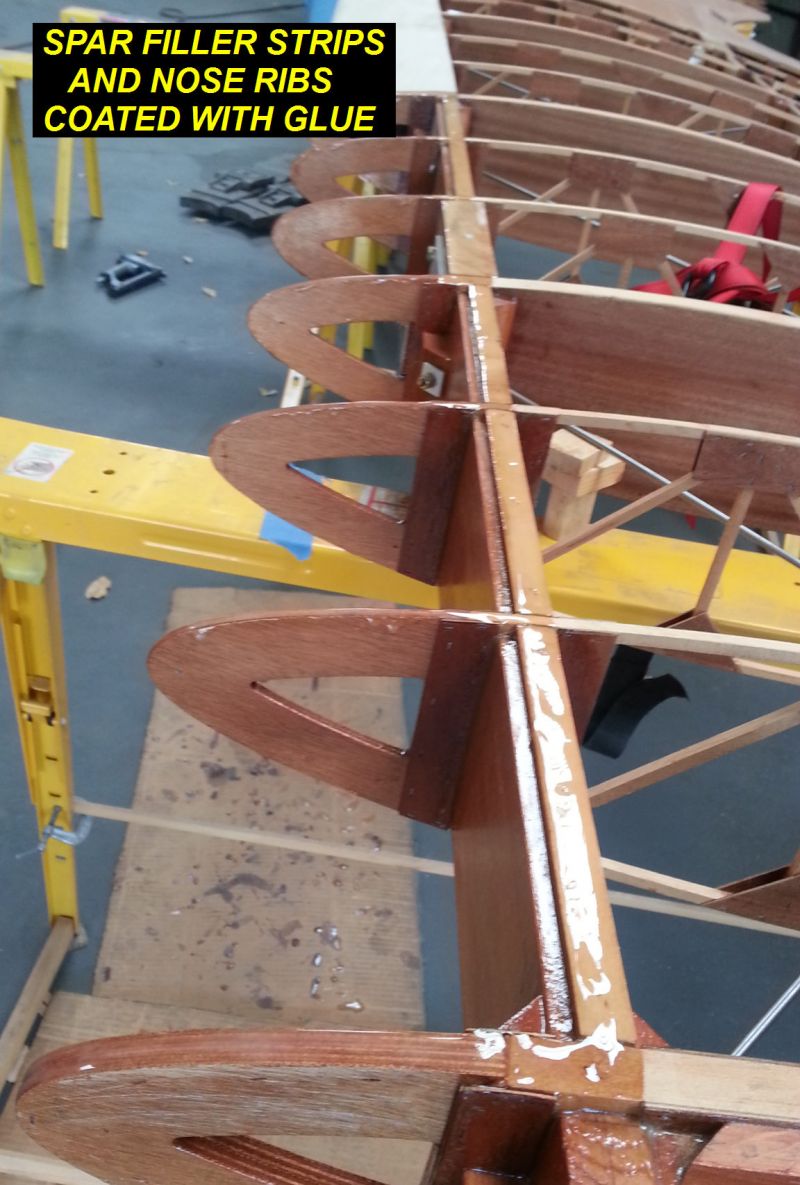 3Q14 - Spar filler strips and nose ribs with epoxy applied and ready for leading edge to be installedClick image for full 1152 x 1707 resolution