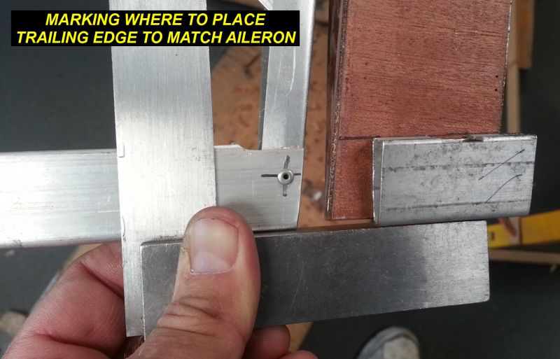 4Q14 - Straight edge and scrap of TE material used to mark where TE will be placed to match aileron aft edgeClick image for full 1719 x 1104 resolution