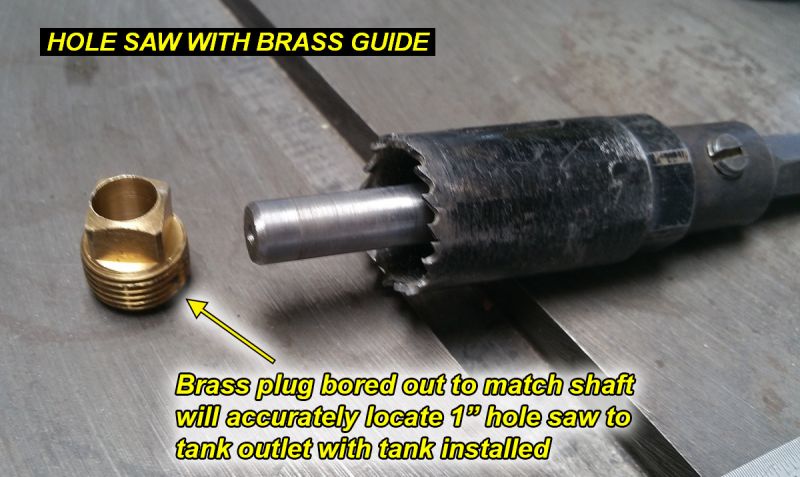 3Q15 - Brass plug bored out to act as a drill guide to put final one inch holes in tank skinClick image for full 1200 x 716 resolution