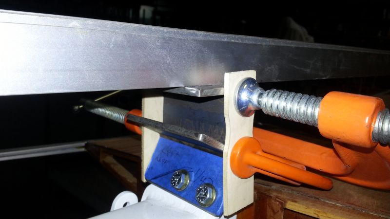 Top Wing Rotator - Two angles will be welded together with an additional strip of steel not shown. Clamps and paint sticks crush slightly to hold the angles tight so I can take them home and tack weld them. Click image for full 2048 x 1152 resolution